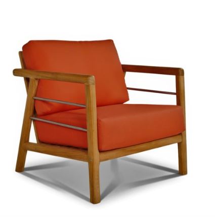 - Mid-century design with canted back leg and marine grade stainless steel accents