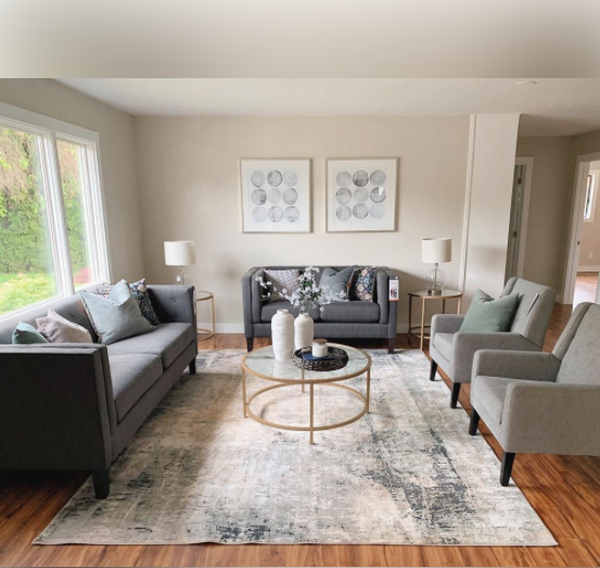 • Colors: Light grey, medium grey, mustard, white, charcoal